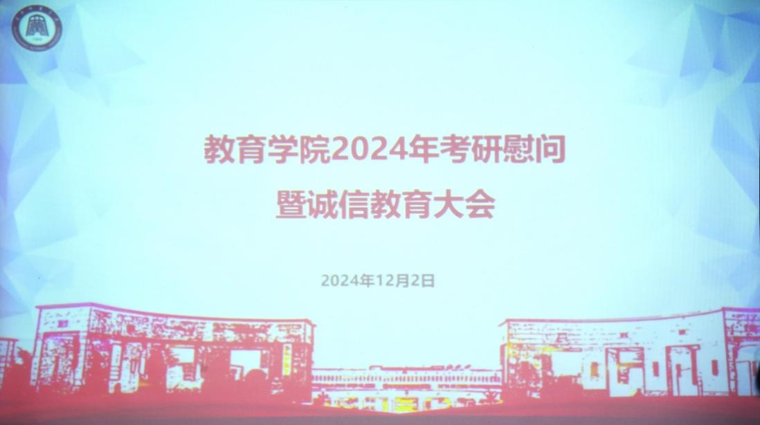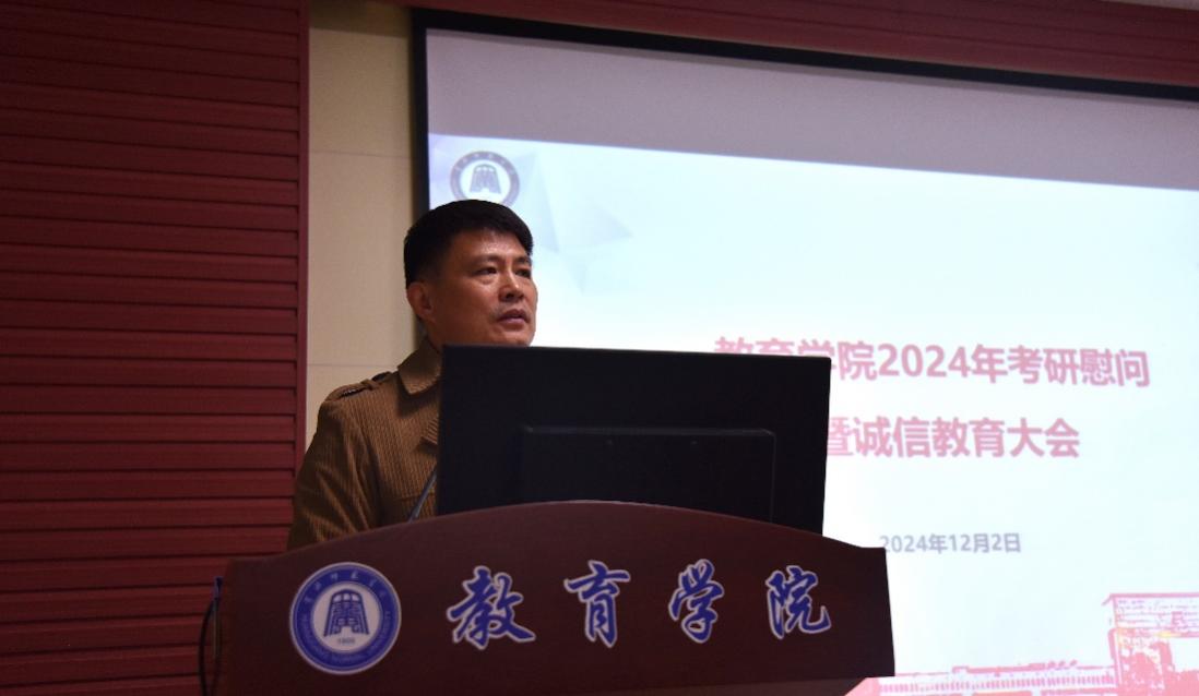 12月2日晚,教育学院在致远楼616室召开2024年考研慰问暨诚信教育大会。学院党委书记钟劲松、副书记徐丹,辅导员卢晓芬以及2025届在校考研学子参加了本次会议。会议由徐丹主持。
