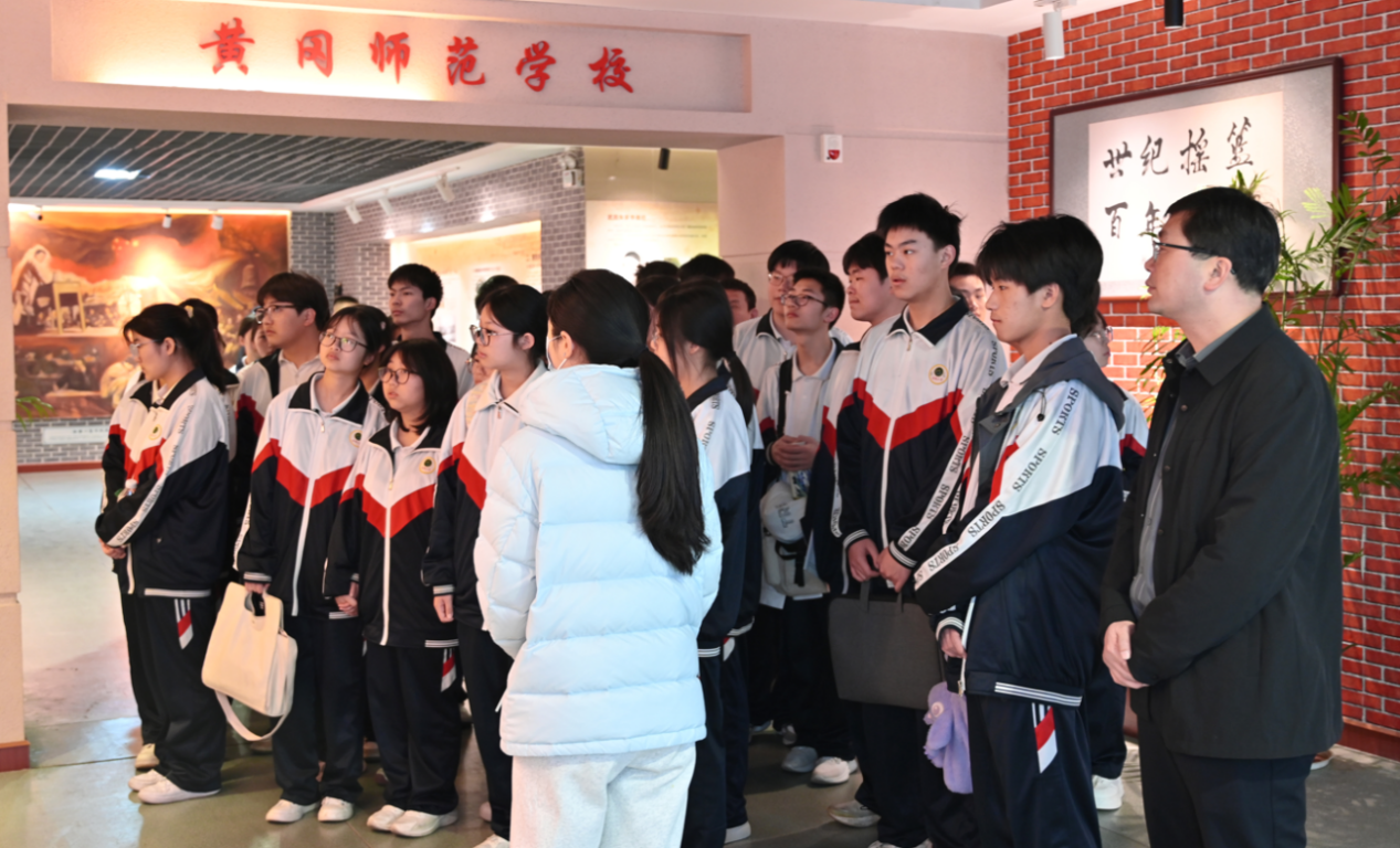 踏入校史馆,泛黄的老照片、斑驳的教案手稿和陈列的奖章奖状,瞬间将麻城二中学子们带入黄冈师范的百年峥嵘岁月。从“黄州府师范学堂”的创办到抗战时期的烽火办学,从改革开放后的学科拓展到新时代的创新发展,学生们在讲解员的带领下,深刻理解了“教育为国之本”的深意。 “原来闻一多先生曾在这里任教!”一名学生指着展板上的名人校友介绍惊叹道。校史馆中“校友墙”上密密麻麻的名字,尤其是扎根乡村教育几十年的基层教师事迹,让不少学生动容。“我从小就想当老师,今天更坚定了这个选择。”一名高二学生感慨。厚重的历史与鲜活的故事,让“师范”二字在学生心中生根发芽。