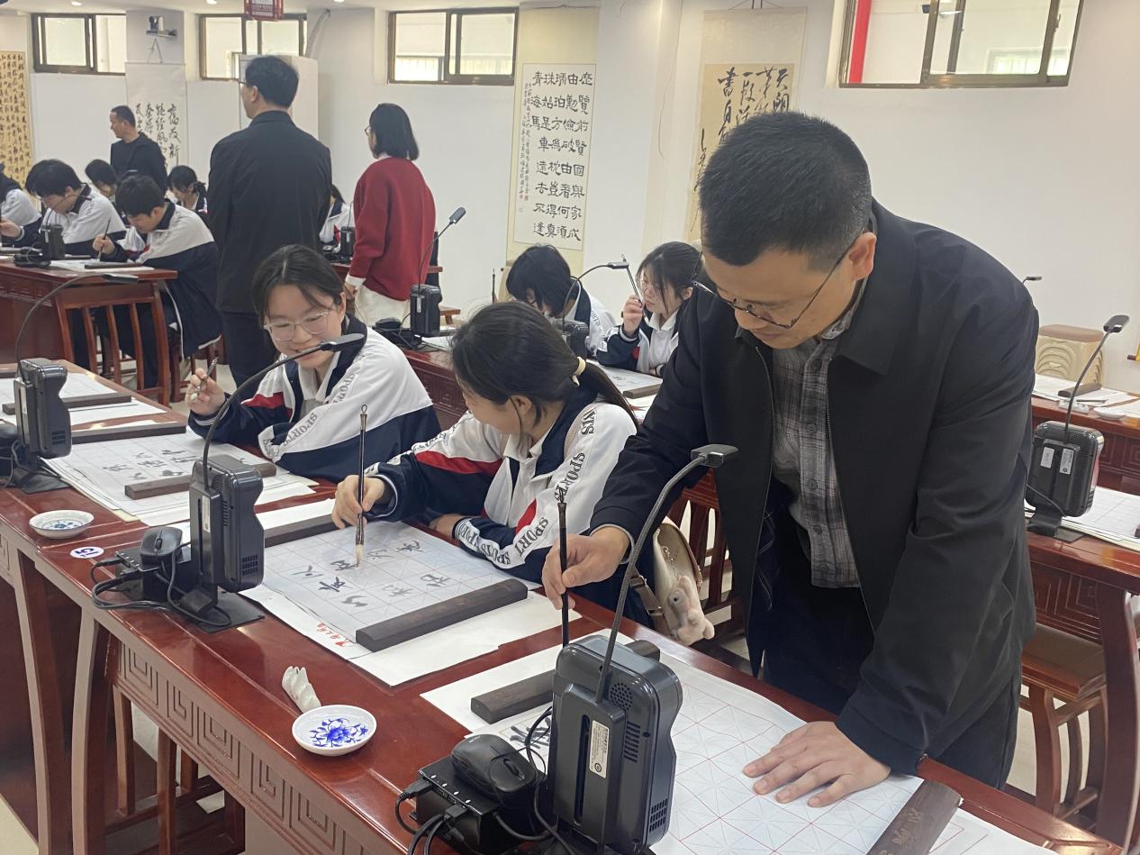 在教学技能训练智慧书写工作室,教务处冯杰副处长现场讲解与操作示范,同学们亲自体验了书法训练过程,同学们体验了现代信息技术与传统文化相结合的毛笔字书写感受,深切感受了文字和书法的魅力。