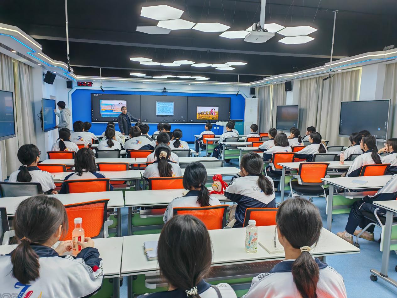 在智慧教室内,悬浮投影、AI学情分析屏、可触控电子课桌等“黑科技”设备让学生们眼前一亮。现场体验环节,学生们分组通过平板电脑完成化学分子模型拼接竞赛,实时数据同步到教室大屏,AI系统即时生成学习反馈报告。 “老师不用讲台,我们像科学家一样自己探索,这种感觉太酷了!”一名学生兴奋地分享。智慧教室负责人冯杰教授介绍,这种“翻转课堂”模式能激发自主学习能力,不少学生当场表示:“希望我们的高中课堂也能这么智能!”