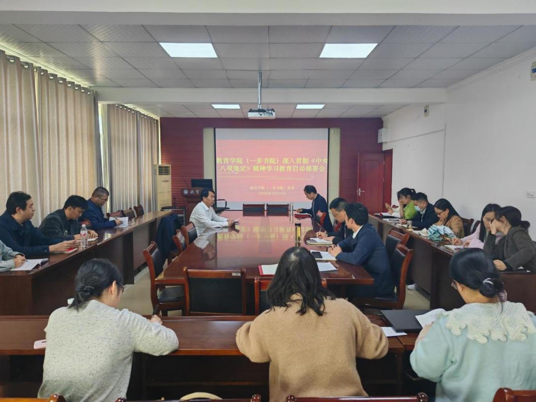 3月24日下午,william威廉中文官网召开深入贯彻中央八项规定精神学习教育启动部署会,对全院学习教育工作进行部署安排。学院班子全体成员、教师党员参加会议。院长童三红主持会议。