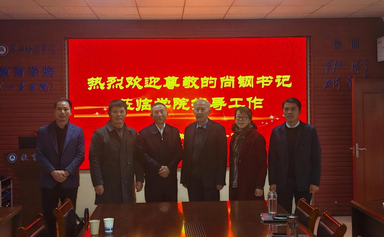 2025年11月17日,时值学校建校120周年之际,应学校校友办邀请,湖北大学原党委书记、我校本科办学首任校长尚钢教授回校交流。校党委书记陈向军、校长漆昌柱、党委副书记陈朝阳、副校长宋文生等校领导出面接待并商讨120周年校庆筹备及相关事宜。