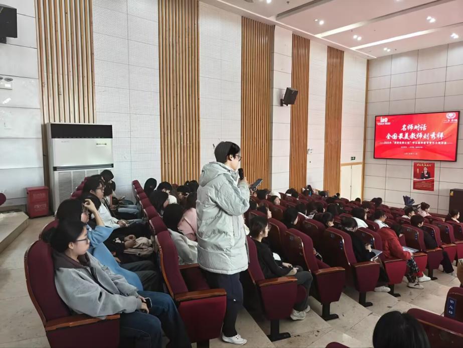 活动现场,刘秀祥老师与同学们热情互动,就“教育者的初心与实践”这一核心话题进行问答解疑,既指引青年教师“坚守育人情怀、把大理想落进小课堂”的前进方向,也强调教师应成为学生的精神引领者与成长陪伴者;同时分享了育人理念,以自身持续学习的经历激励学子奋进,并针对教育理想与现实的矛盾,提出“躬身入局”的解决思路,用生动案例诠释了教育改变命运、塑造未来的长远价值。