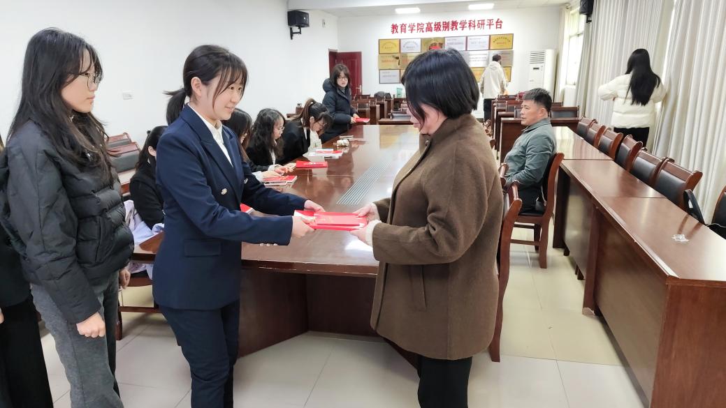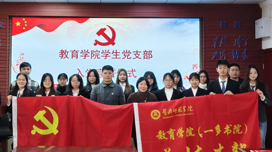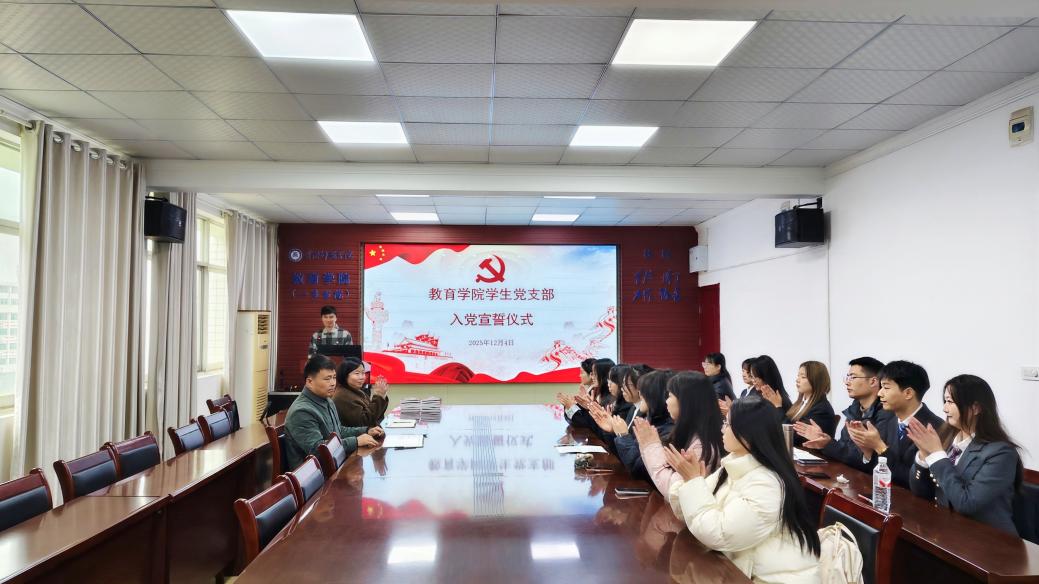 为进一步加强党员党性教育,激励新党员坚定理想信念,12月4日中午,教育学院(一多书院)学生党支部2025年下半年新发展党员入党宣誓仪式在致远楼616会议室举行,学院党委书记钟劲松、党委副书记徐丹、学生党支部书记宋雄伟以及全体新党员参加此活动。仪式由学生党支部书记宋雄伟主持。