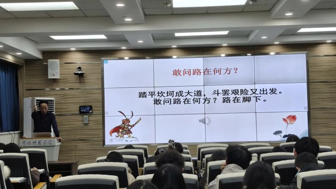 讲座开始时,徐生锋老师以课堂提问的要求与互动策略为主题展开分享,特别强调:“学生提问是对老师最好的奖励”,点明了课堂提问在师生互动中的重要价值。
