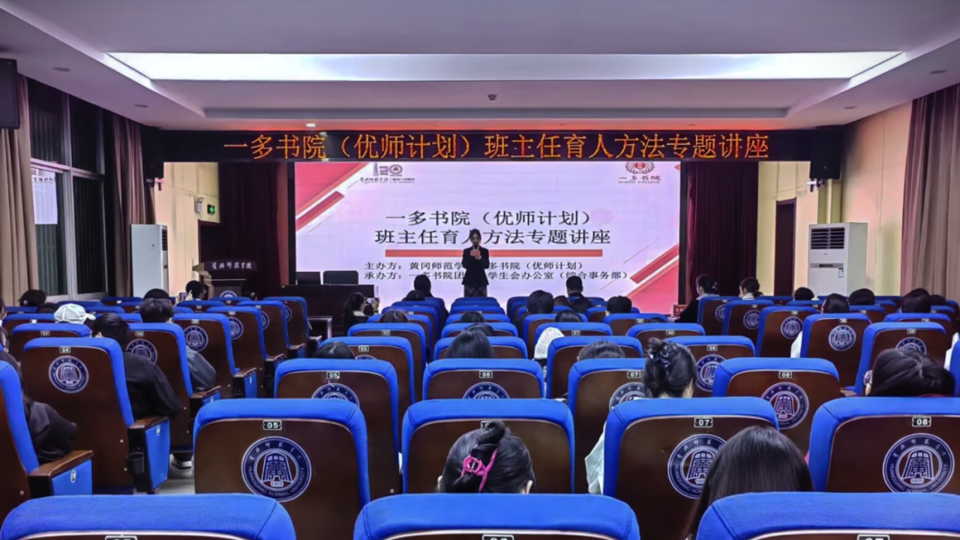 12月10日19:00,黄冈师范学院一多书院“精研班主任之道,赋能优师育人”专题讲座在北区多功能会议室启动。
