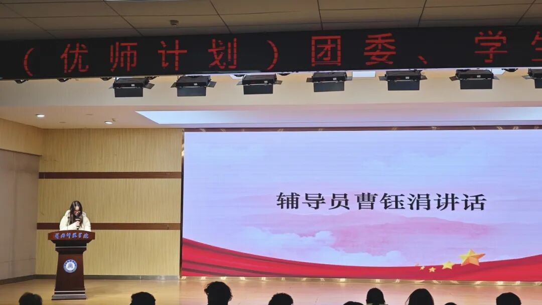 颁奖仪式后,辅导员曹钰涓老师发表讲话。她对团学组织一年的辛勤工作与取得的各项成绩给予了肯定,并勉励全体成员不忘初心,再接再厉,将服务奉献精神与个人成长紧密结合,在未来的学习与工作中不断追求进步。