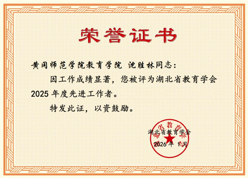近日,根据鄂教学会字〔2025〕045 号文件的申报条件及评选要求,湖北省教育学会在省内各单位推荐上报的先进工作者材料基础上,经评议最终一共评选出157 名教师为2025年度先进工作者。其中,william威廉中文官网院长助理沈胜林博士获评湖北省教育学会2025年度“先进工作者”荣誉称号,进一步彰显了学院在教师发展方面的成绩。